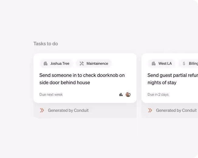 Conduit automates high-volume guest messaging, answers FAQs, handles booking and availability questions, and manages check-in/check-out details across all your channels. It also boosts upselling, coordinates guest services and requests, and triages complex issues to staff so teams are free to focus on added-value tasks to grow your business.