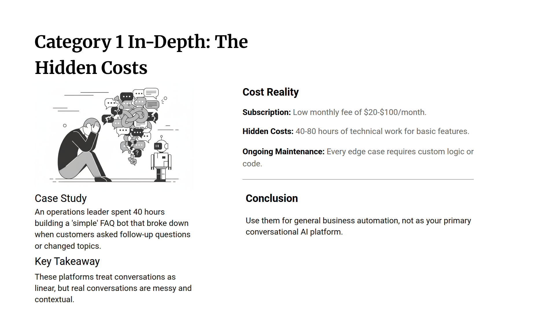 Here's what most people don't realize until they're 40 hours into implementation: these tools weren't designed for dynamic conversations.