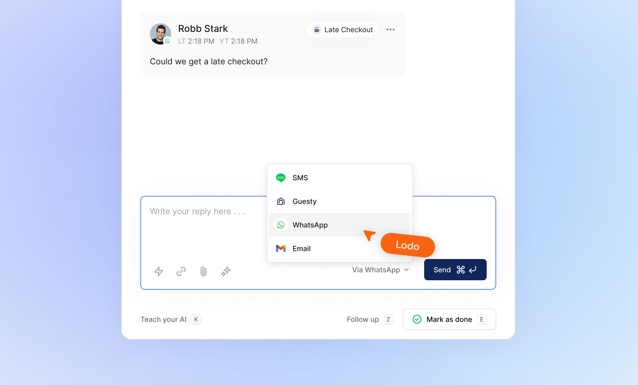 Once connected, all incoming WhatsApp messages appear directly in your HostAI inbox. HostAI allows you to: